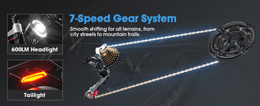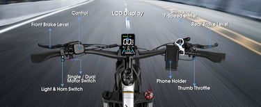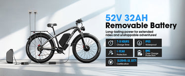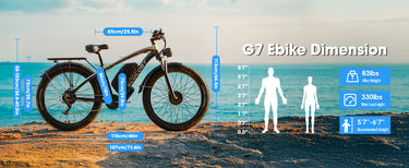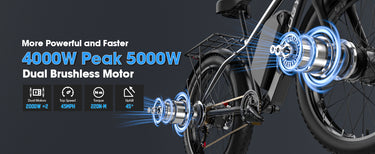 The G7 is a 26-inch electric fat bike with two 2000W motors, a total power of 4000W, and a maximum output of 5000W. Its high-capacity 52V 32AH battery allows it to travel up to 95 miles. Its top speed reaches 45 MPH. Gamvire also has another electric bike with a peak power of 5000W - the 24" V7 PRO.