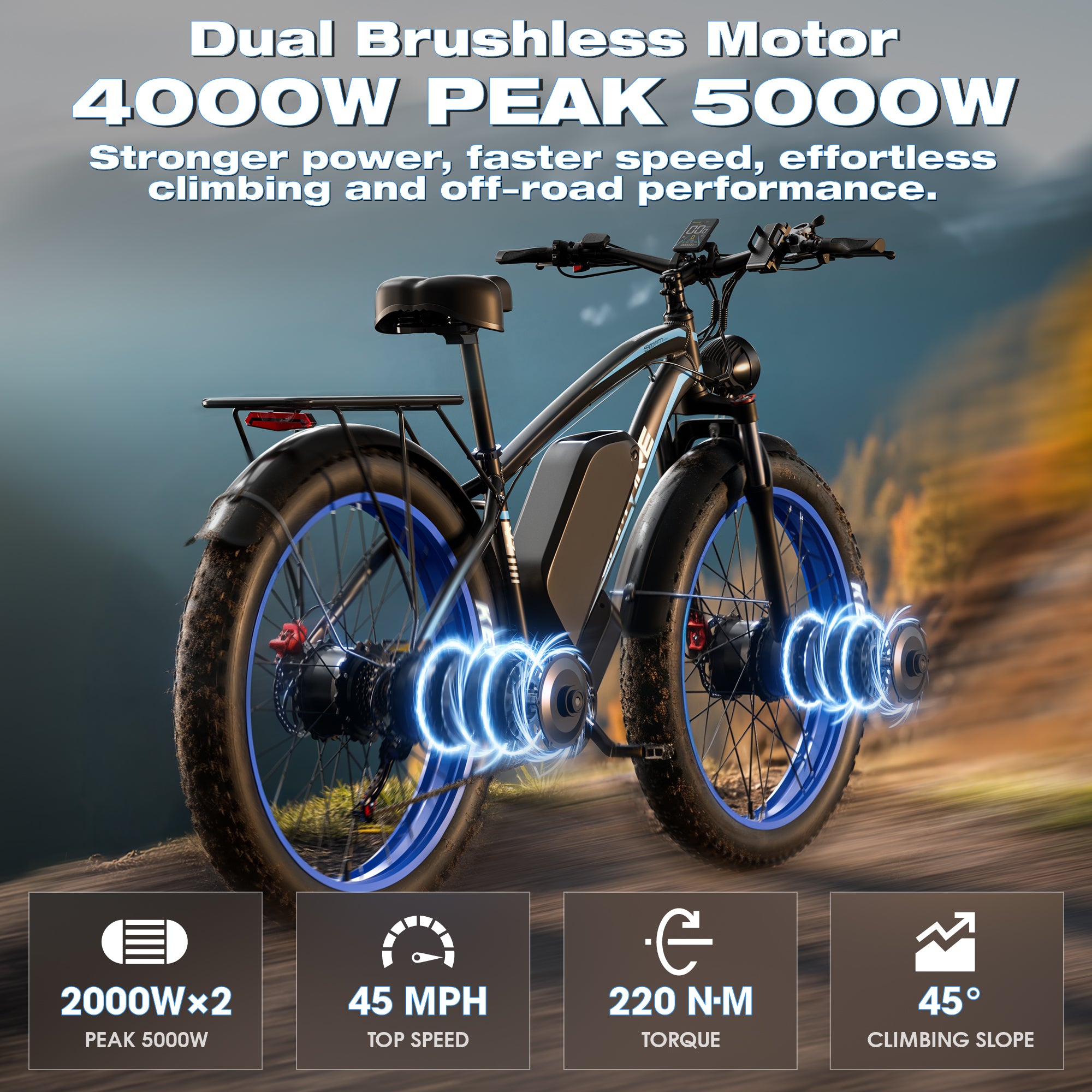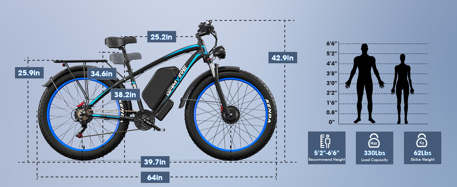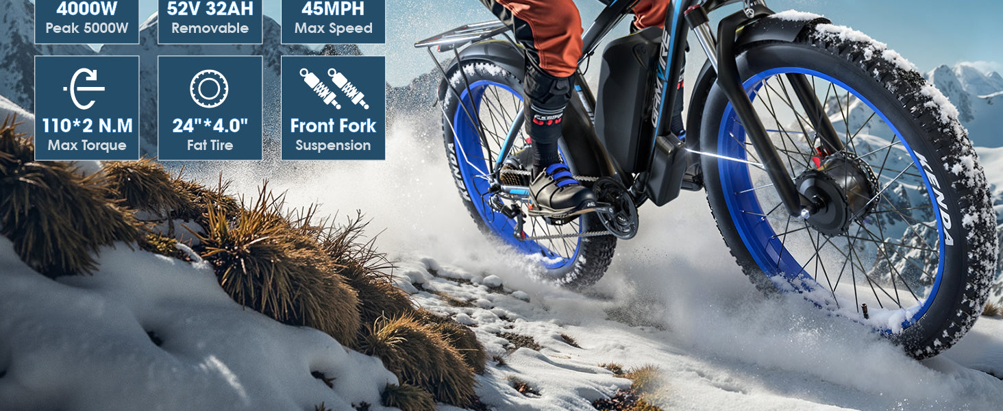 GAMVIRE 24" V7PRO Dual Motors Fat tires 4000W Peak 5000W 52V 32AH All Tarrain Electric Bike